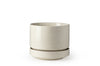 Round Two is a sleek, two-piece minimalist vessel inspired by Richard Lindh's 1960s design with additional enhancements to the original's aesthetic. This beautifully functional planter is accompanied by a deep overflow saucer and sized to fit 8-inch grower pots with extra room for drainage. The fully vitreous ceramic is glazed inside and out, ideal for indoor or outdoor applications.