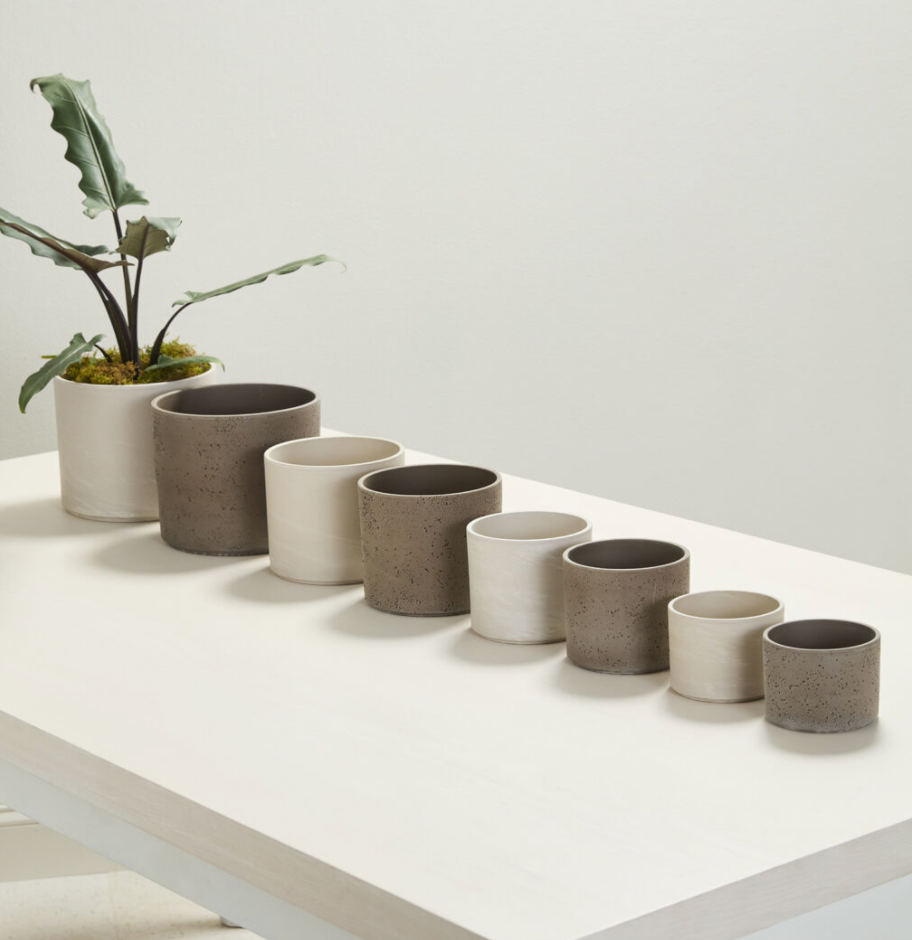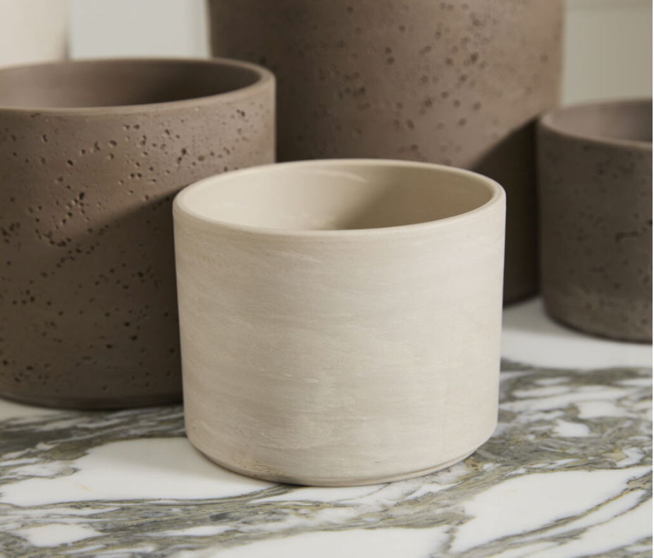 Clean and sleek, the Fulton Pot is a minimalist ceramic cylinder pot with slight surface texture, giving the look of natural stone. The warmth of the clay enhances the color of any plant displayed in this staple pot, available in 4 drop-in friendly sizes. Since there's no drainage hole in the Fulton Pot, which is perfect for double-potting.