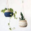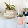 These boho hanging planters are perfect for holding a 4" pot. They are handmade by our artisans in Gitarama, Rwanda. The women grow their own sisal plants, extract the fibers, then hand-dye and weave them into these beautiful works of art. The sisal is woven around sweetgrass, a fragrant grass with a subtle sweetness.
