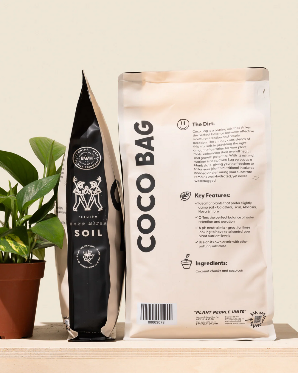 Coco Bag is a potting mix that strikes the perfect balance between effective moisture retention and ample aeration. The chunky consistency of this mix aids in providing the right amount of aeration for your plant roots, enhancing their overall health and growth potential. With its minimal nutrient traces, Coco Bag serves as a blank slate, giving you the freedom to tailor your plant's nutritional intake as needed and ensuring your substrate remains well-hydrated, yet never waterlogged.